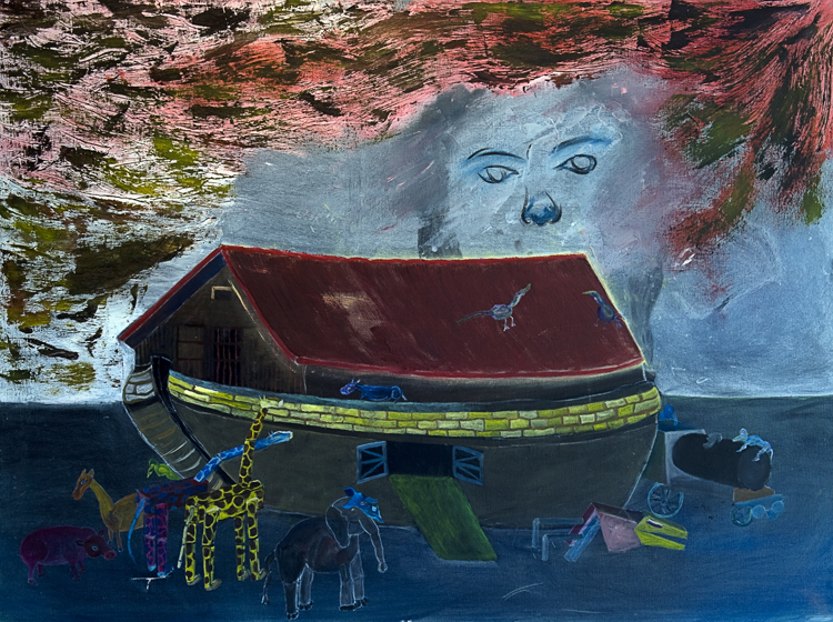 "No Man's Ark" Acrylic base, Oil on canvas 40"x30" 2012-(in progress)